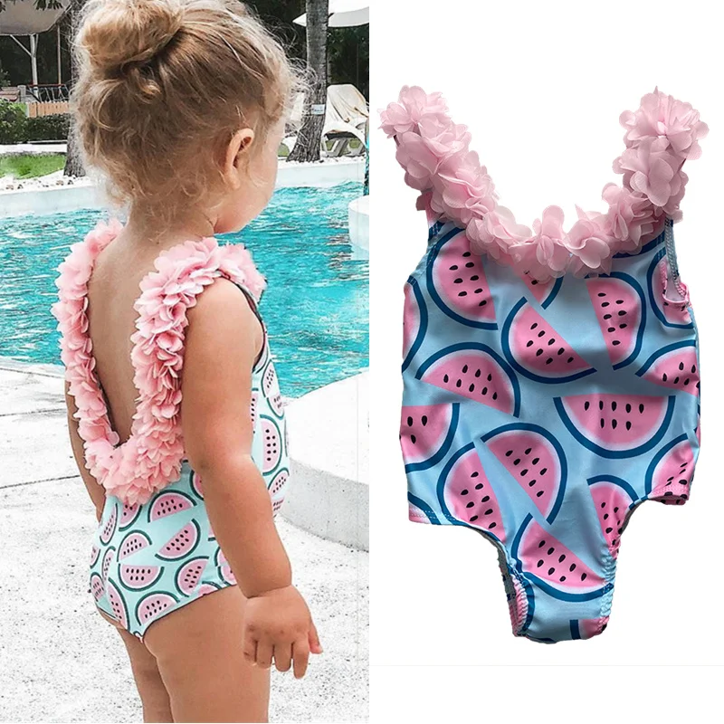 Name: Bañadores para niñas pequeñas, traje de Bikini con dibujo de frutas, volantes, ropa de playa, traje de baño de una pieza con flores
