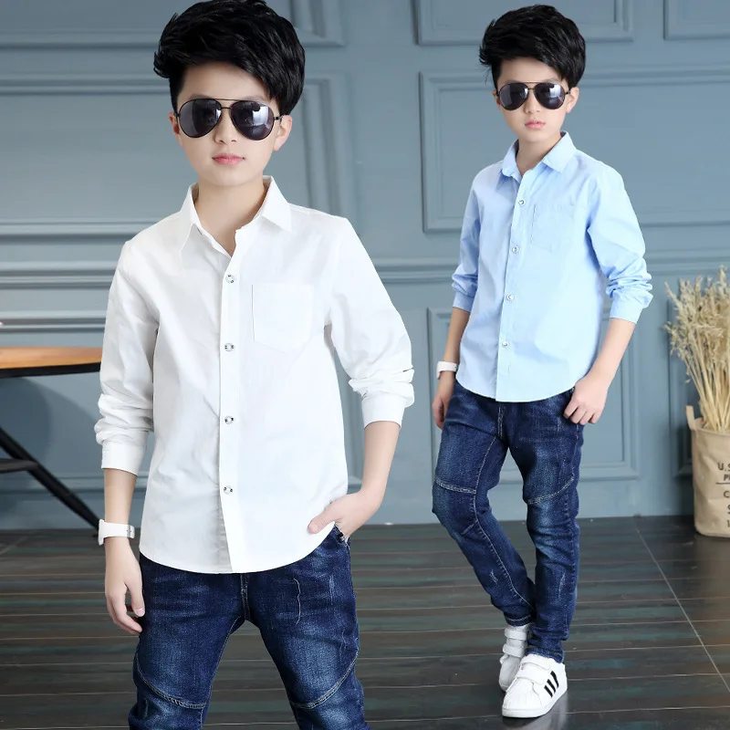 Name: Camisetas de manga larga para niños, camisa de Blanco sólido de algodón a la moda, con botones y cuello vuelto, 8 12y, primavera 2021