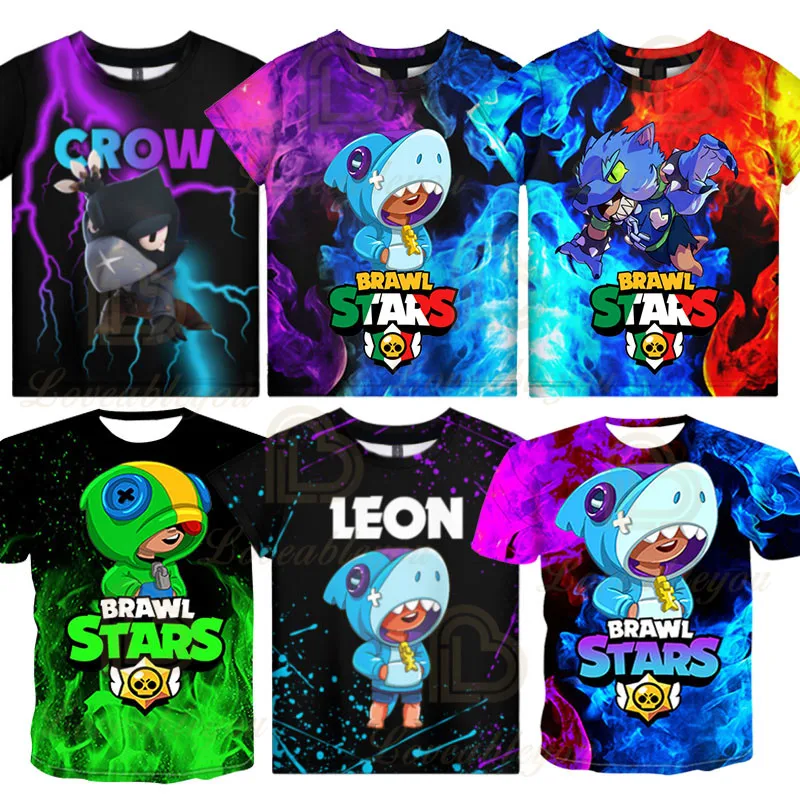 Name: Camiseta con estampado 3D de Brawls Kids Crow Shoot para niños y niñas, ropa para niños, camisa de estrella, León, 2020